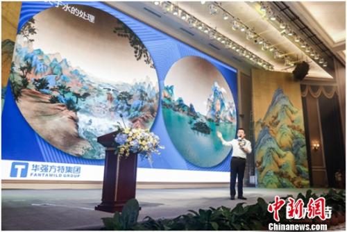 在《飛越千里江山》品鑒會上,丁亮分享了《飛越千里江山》主創團隊突破難關,打造這道古典藝術饕餮盛宴的創作歷程。他表示:“王希孟繪制《千里江山圖》時先后進行了五道工序,方特主創人員則通過反復觀察原作,仔細分中國畫的勾勒、皴染技巧,根據原畫繪制的大概步驟,先后進行了十次數字著色,最終完美實現了傳世國寶的3D數字復刻”。
