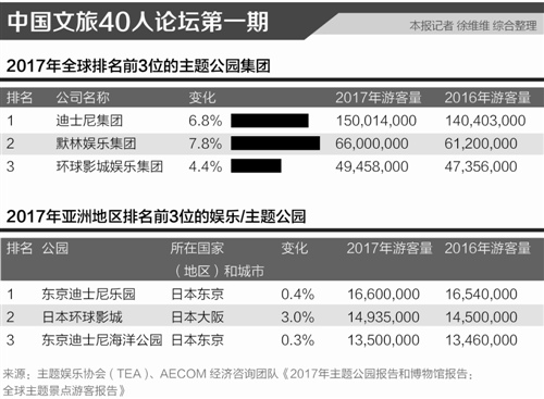 5月17日,在主題娛樂協會TEA與AECOM聯合發布的《2017全球主題公園調查報告》中,中國本土主題公園企業——華僑城集團、華強方特及長隆集團分別排名第四、第五和第六,游客量增速分別為33%、22%和13%。對比世界前三大主題公園美國迪士尼公司、英國默林娛樂集團以及美國環球影城度假區,2017年年游客量增長趨勢分別為7%,8%和4%。