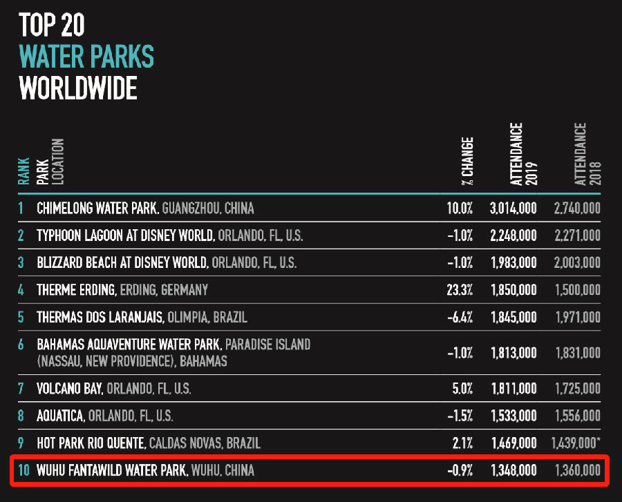 該報告的細分榜單顯示,多座方特主題樂園的表現同樣表現不俗。華強方特旗下目前運營的三座方特水上樂園,均登上了亞太地區排行榜前列,其中蕪湖方特水上樂園更位列全球排名前十。