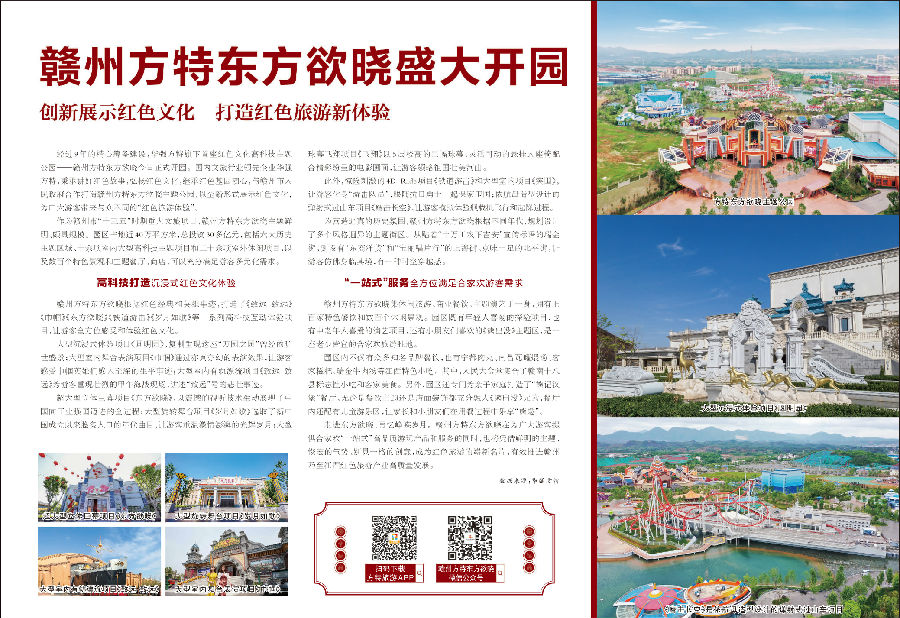 除了此次以新聞形式報(bào)道外,方特在今年還受到《人民日?qǐng)?bào)》的兩次專題聚焦。今年5月10日,華強(qiáng)方特在江西贛州隆重發(fā)布了主題公園新品牌——“方特東方欲曉”,正式進(jìn)軍紅色旅游領(lǐng)域。隨著新品牌旗下贛州方特東方欲曉與寧波方特東方欲曉的陸續(xù)開(kāi)園,憑借令人耳目一新的紅色旅游體驗(yàn),方特東方欲曉受到廣大游客的熱烈追捧,掀起了紅色旅游體驗(yàn)熱潮。也正因此,當(dāng)贛州方特東方欲曉與寧波方特東方欲曉開(kāi)園之際,《人民日?qǐng)?bào)》分別在5月28日和7月9日,以專題形式對(duì)兩座主題公園進(jìn)行了詳細(xì)介紹。