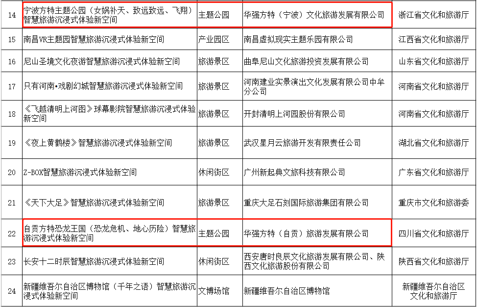 近日,文化和旅游部(下稱“文旅部”)公布全國智慧旅游沉浸式體驗(yàn)新空間首批24家培育試點(diǎn)項(xiàng)目名單,自貢方特的《恐龍危機(jī)》《地心歷險(xiǎn)》與寧波方特的《女媧補(bǔ)天》《致遠(yuǎn) 致遠(yuǎn)》《飛翔》光榮上榜。