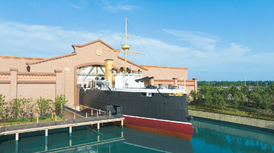 在大型室內(nèi)有軌漂流項(xiàng)目《致遠(yuǎn) 致遠(yuǎn)》中,游客乘坐智能運(yùn)載船穿過時(shí)間長河,置身一個(gè)多世紀(jì)前巨浪滔天的海戰(zhàn)現(xiàn)場,身臨其境地目睹民族英雄浴血奮戰(zhàn)的壯烈景象,見證北洋水師名艦“致遠(yuǎn)”號(hào)的傳奇一生。
