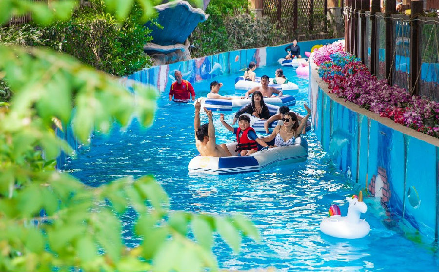 樂園引進多項國際先進的大型水上游樂設備,擁有《颶風灣》《飛躍河谷》《翻江倒海》《大喇叭》《超級碗》《叢林漂流》《熊出沒水寨》等16大特色水上項目,并創(chuàng)意打造上百個特色景觀,致力于為游客帶來清涼、夢幻、歡樂、刺激的游玩體驗。