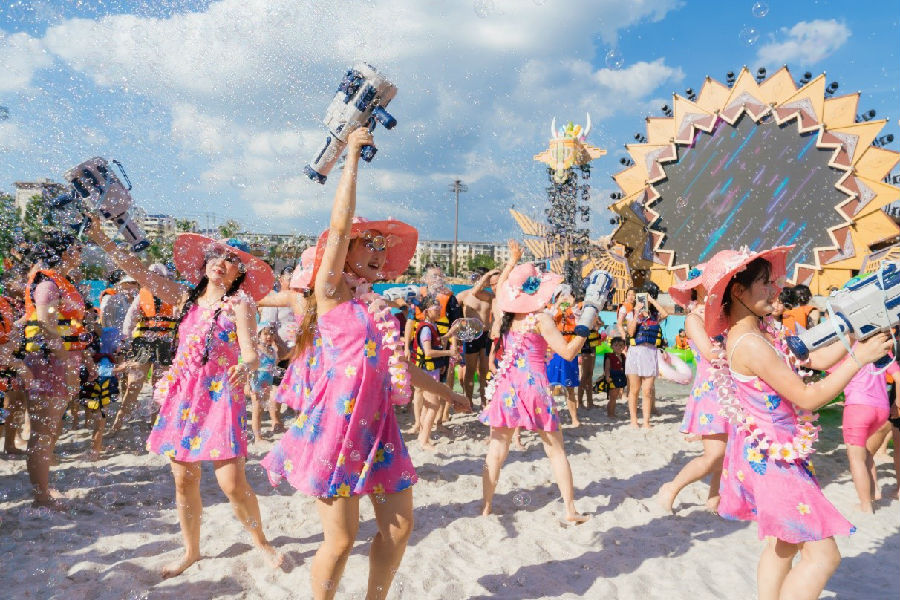 開園之際,徐州方特水上樂園還推出了一系列精彩紛呈的活動。游客們不僅能欣賞精彩的主題演藝,還能參與各色互動演出,在激蕩的浪花和動感的音樂聲中暢享夏日水狂歡。