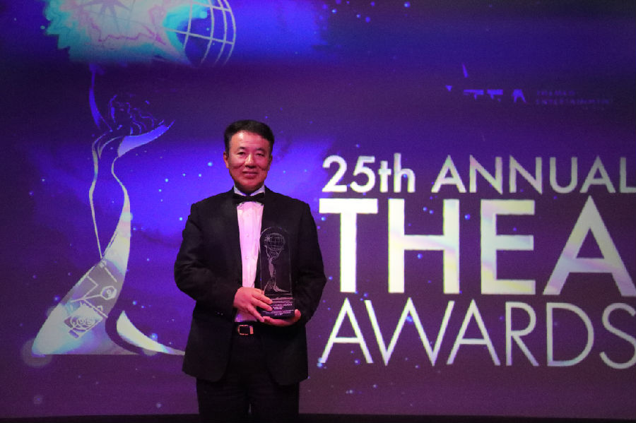 在活動的高潮時刻——“Thea頒獎晚會”上,全球主題娛樂業界的最佳行業巨星、創意科技先鋒以及國際領先的頂尖項目成為主角。李明先生現場領取了“方特東方神畫”的“杰出貢獻獎”,并在隨后發表感言時分享了“方特東方神畫”的創作初衷。李明表示,方特期望用頂尖的科技來展示中國文化、傳播中國文化,所以創意研發了“美麗中國”三部曲,向游客精彩呈現中國的過去、現在和未來。
