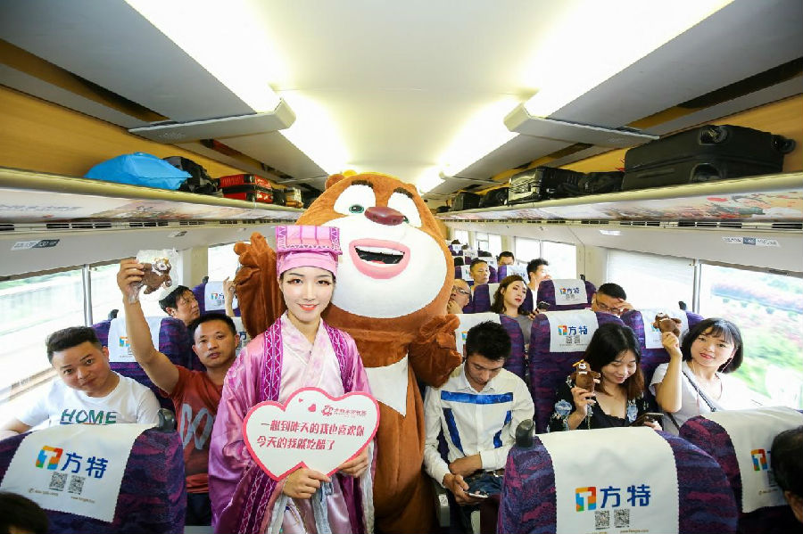 除了冠名此次上海虹橋-深圳北的動車組,華強方特今年還冠名了青島北-沈陽北G1248次、西安北-青島北G1856次、南寧東-北京西G422次等高鐵列車,以上高鐵線路途經的沈陽、青島、濟南、鄭州、株洲、南寧、長沙等城市,均運營有方特主題樂園。方特正以這種更加直觀的方式,努力將自己的歡樂理念傳播到更遼闊的中華大地上。