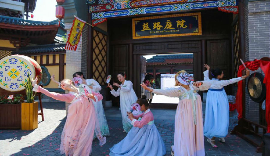 當天,方特絲路神畫古色古香的園區還吸引了很多古風愛好者前來體驗游玩。他們身著古裝,穿梭在園區充滿傳統文化韻味的建筑前拍照留念,成為園區中一道別致的風景。