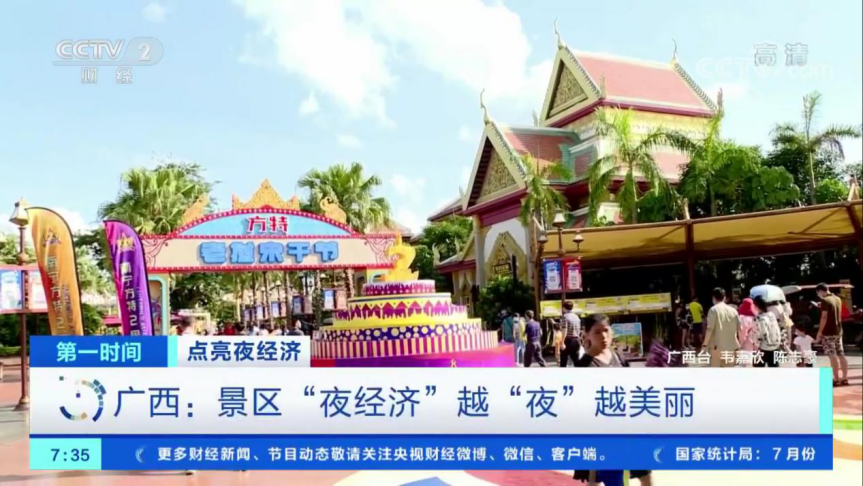 發展“夜經濟”,夜間旅游是重點。華強方特旗下南寧方特東盟神畫主題樂園開啟了暑期“夜游東南亞”專場活動,不僅帶給游客全新的游玩體驗,也成為促進當地夜經濟發展的全新動力。相關活動近日獲得央視聚焦,南寧方特精彩紛呈的夜間游園場面登上了央視多個頻道的新聞欄目..