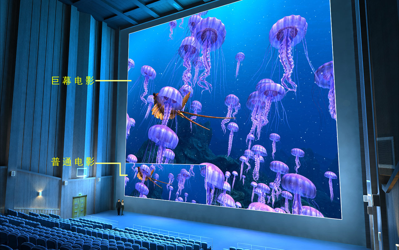 巨幕影院,擁有長60米高16米的大型立體銀幕,弧形銀幕加以個(gè)性化的觀看角度設(shè)計(jì)充分?jǐn)U展觀眾的外圍視野,影院觀眾席可容納1000人。